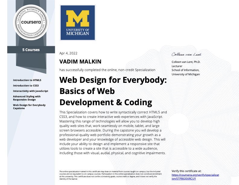 My Certificates